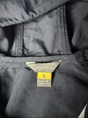 Lightweight hooded vest by Eddie Bauer. Full front zipper. Front zip pockets. Subtle logo embroidery. Versatile layer for mild weather.