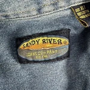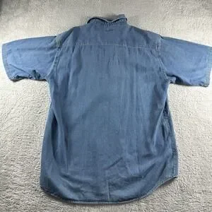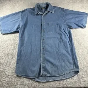 VINTAGE Chambray Shirt Mens XLT Blue Button Up Short Sleeve Sandy River Pocket