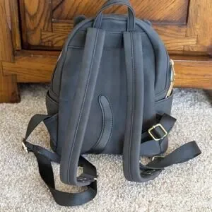 You'll love carrying this unique and stylish backpack wherever you go! Loungefly is well known for making quality accessories. Faux leather mini backpack with applique and embroidered details. Adjustable shoulder straps, inner cell phone pocket and outer zipper front pocket. Measures 9” x 10.5” x 4.5”