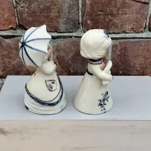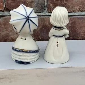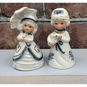 Vintage Jasco Bells Girls Women Set of 2 White Blue Porcelain Royal Majestic