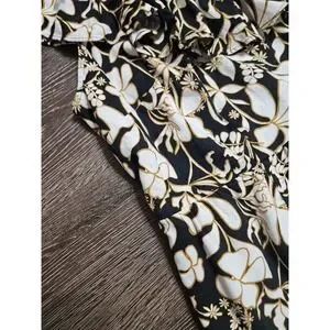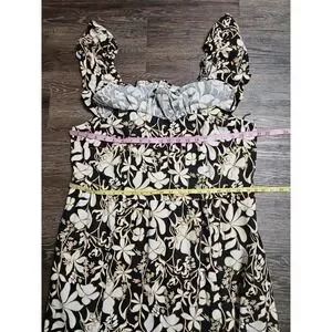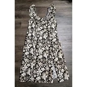 Ava & Viv Ruffle Sleeve Empire Waist Linen Blend Dress In Black Floral 1X
