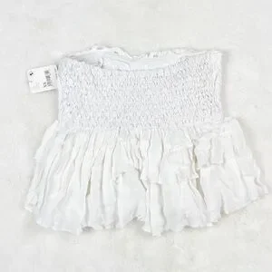 Keep it so glam in a corset top that makes a stylish statement! This stunning cami from Free People features a strapless straight neckline and tiered silhouette with smocked detailing at the back for effortless, pull-on ease. The lace piecing of this top is super stylish! Can be worn on a date or for a summer vacay! Features: - Strapless straight neckline - Smocked back for a perfect fit - Lace piecing - Seamed bust for added support - Tiered ruffled hem - White color With its smocked hugging fit at the back you'll surely get a look you'll love. Style it with denim pants, cardigan and ankle booties to complete a date look. For a summer vibes look, pair it with denim shorts, sunnies and flat metallic sandals.