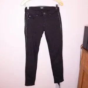 NWOT Hudson Black Leather Trimmed Lace Up Jeans Sz 25
