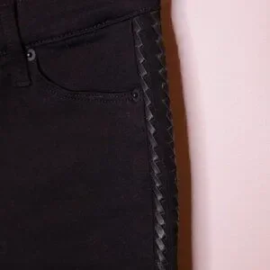 Black skinny jeans from Hudson Denim featuring leather woven lace up at the sides.