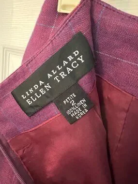 Vintage 90's Linda Allard Ellen Tracy Purple Linen Pencil Skirt Size 2 Petite