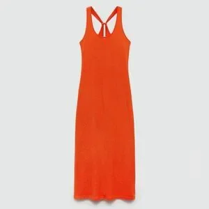 Mango orange cross back knitted dress NWT