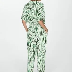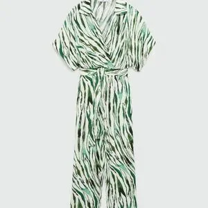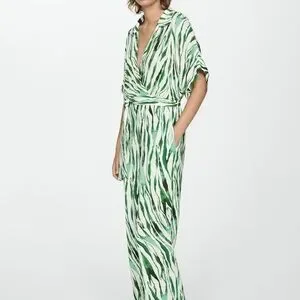 Short sleeve. Two side pockets. Ribbon at the waist with bow. Printed design.