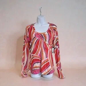 Madison Fashion Top Sz L Geo Print Multicolor Long Sleeves Round Neck Shirt New