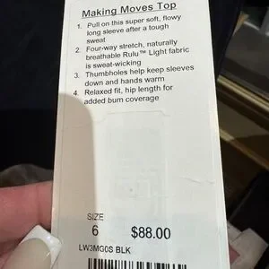Lululemon making moves black top size 6 Women's Black Long Sleeve Top NWT
