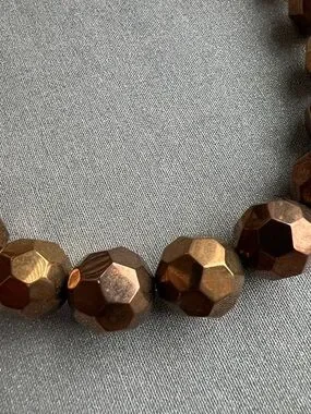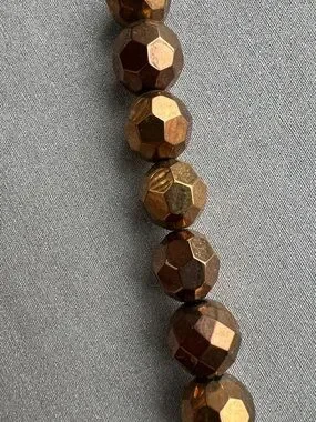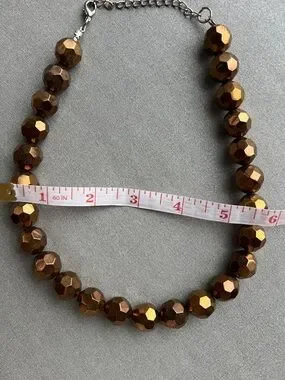 Bold faceted beads in a rich metallic brown finish. Shiny brown color adds warm radiance to any outfit. Lightweight design with adjustable chain for a comfortable fit. Elegant, eye-catching necklace perfect for day or evening wear.