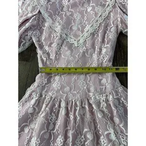 Step into timeless romance with this enchanting vintage 1980s Gunne Sax by Jessica McClintock prairie dress. Crafted in soft blush pink satin with a delicate overlay of ivory floral lace, this dress features voluminous puff sleeves, a dramatic lace-trimmed collar, and a romantic fit-and-flare silhouette.