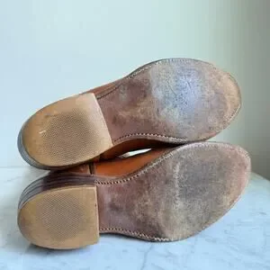 Condition: Fair vintage condition. Visible wear, creasing, and distressing throughout consistent with age and use. Bottom of heels are a bit slippery could use some resoling.