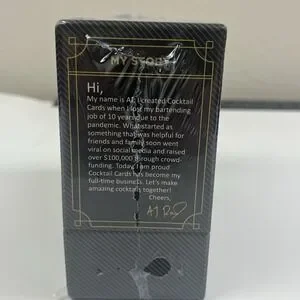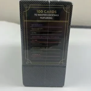 The product is a set of 100 original cocktail recipes printed on bartender cards, featuring different drinks and mixtures. Made of paper and imported from China, these cards are a comprehensive guide for those looking to master the art of bartending. Perfect for collectors or those interested in trying new and exciting cocktails, this set provides a variety of recipes to explore and enjoy.