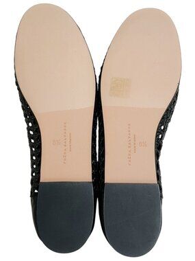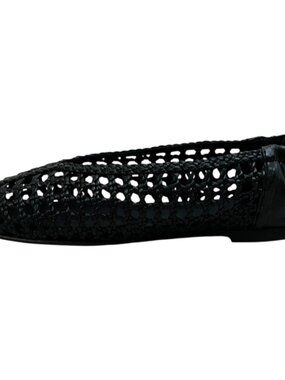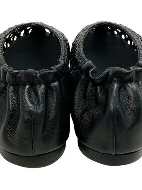 Freda Salvador Black Leather Riley Woven Round Toe Flats