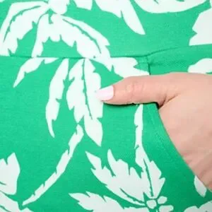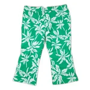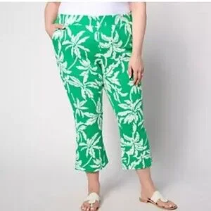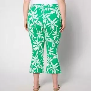Belle By Kim Gravel Green & White Tropical Flare Capri Pants, XLP