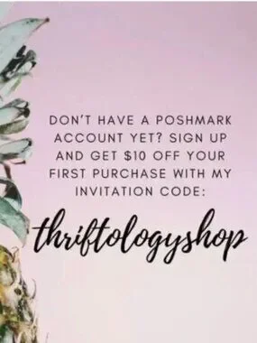 Don’t have a Poshmark account yet? Sign up and get $10 off your first purchase with my invitation code: THRIFTOLOGYSHOP