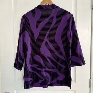 Ming Wang Purple Zebra Striped Knit Jacket Cardigan Medium
