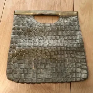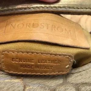 Nordstrom leather handbag/clutch. Animal print with gold leather and furry covering.