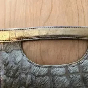 Nordstrom leather handbag/clutch. Animal print w/Gold leather + furry covering.