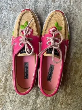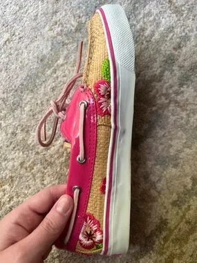 Sperry Hot Pink Floral Embroidered Canvas & Patent Boat Shoes