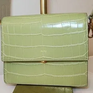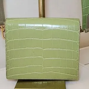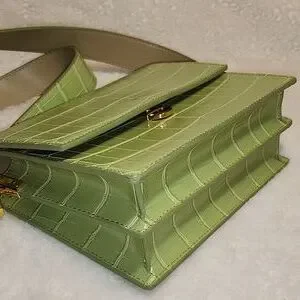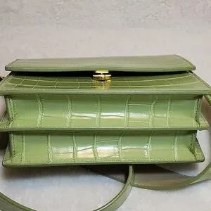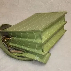 This stylish green handbag features a sophisticated crocodile-embossed design. Perfect for any occasion, it adds a touch of elegance to your outfit.