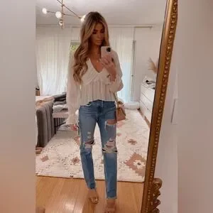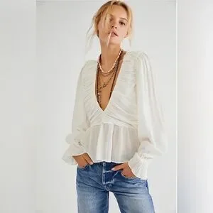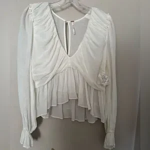 NWT Free People Daia Long Sleeve Vneck Peplum Waist Open x back-Size small