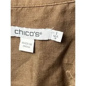 Chicos Linen Long Sleeve Floral Appliqué Boho Button Down Shirt Top Woman's 1