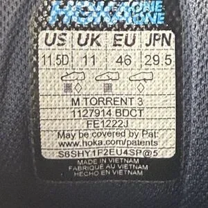 Hoka One Torrent 3 Men's Size 11.5 D Blue Running Shoes Sneakers 1127914 BOCT