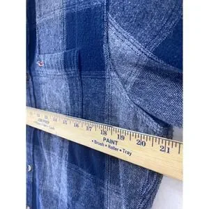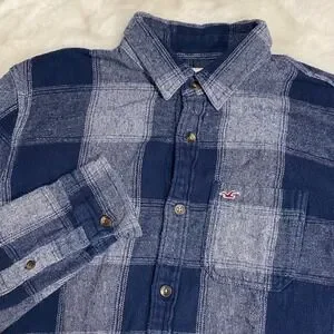 Hollister Mens Blue Plaid Cotton Flannel Button Down Shirt Medium Grunge Preppy