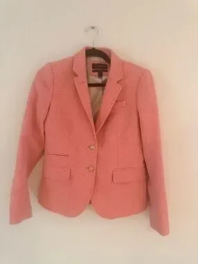 J. Crew Coral Pink Tweed Blazer with Gold Buttons