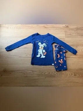 GAP pajama tops and matching bottoms with playful character prints. Soft knit fabric for cozy sleep. Mix of Mickey, Toy Story and character motifs. Easy to pair and wear nightly.