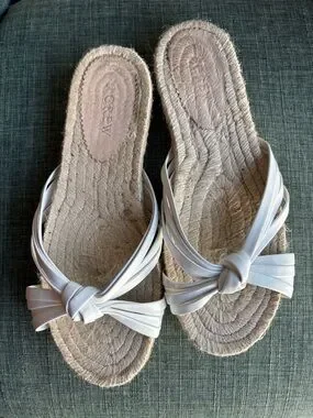 J. Crew women’s White Knotted Espadrille summer Slides Size 8 worn once EUC!