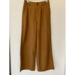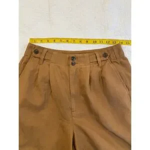 Madewell Harlow Wide Leg Pleated Trousers Brown Linen Blend Size 4 High Rise