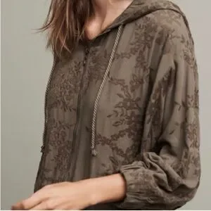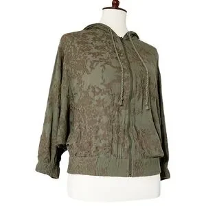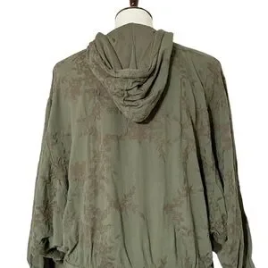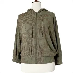 Antropologie Saturday Sunday Tonal Embroidered Floral Green Dolan Sleeve Jacket Size XSmall.