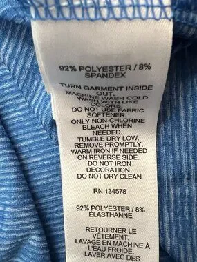 The Vineyard Vines Polo Men’s Size Medium Blue Striped Performance Golf Shirt is a classic and preppy piece designed for men who enjoy golfing or other outdoor activities. Made from a blend of polyester and spandex, this lightweight and stretchy shirt offers comfort and flexibility.
