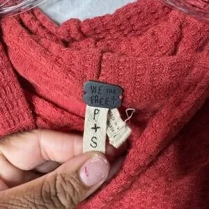 WE THE FREE Orange Waffle Knit Cowl Neck High Low Long Sleeve Top Women S