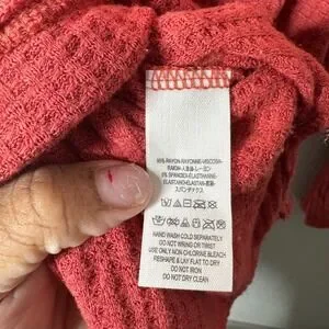 Cozy up in this charming red waffle knit top from We The Free, designed to bring warmth and style to your everyday wardrobe. The relaxed fit and cowl neckline create a comfortable yet chic silhouette, perfect for layering or wearing on its own. Its unique high-low hemline adds a modern touch, while the textured waffle knit offers a delightful tactile experience. This versatile top is ideal for casual outings, weekend adventures, or simply relaxing at home.