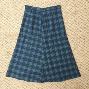 VTG Free People Houndstooth Wool Blend A-Line Midi Skirt Blue Sz 5 Made in USA