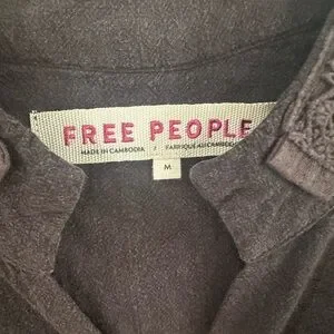 Free People Brown Suede Military-Style Lace-Trim Jacket