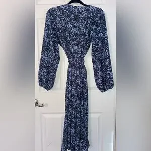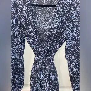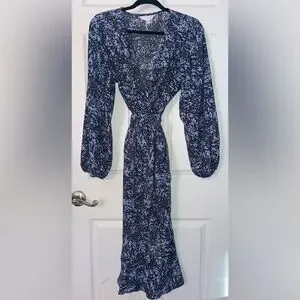 LC Lauren Conrad Charcoal and Blue Longsleeve Patterned Dress