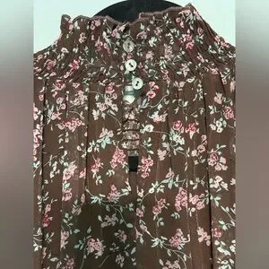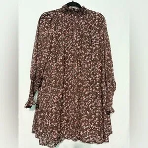 Elegant dress with floral design. Long sleeves and flowy silhouette.