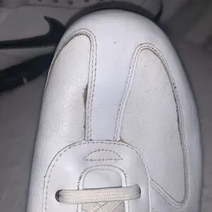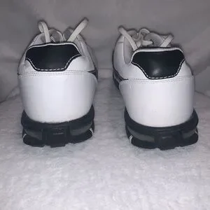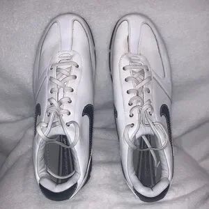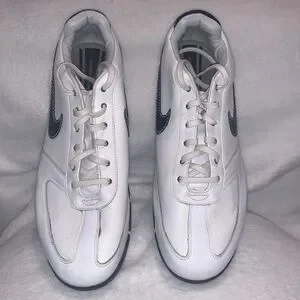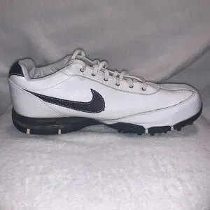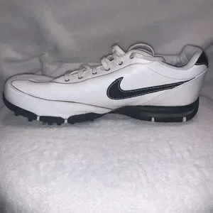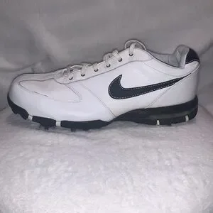 These are Nike spiked golf shoes in a size 10W. There missing two of the spikes on the bottom of the right heel of the shoe. They are used and the in decent condition. There clean and do have some cosmetic scuffs as shown in the pictures. Overall they still look very nice. (Box 6)