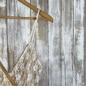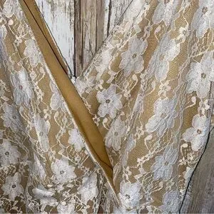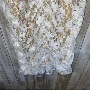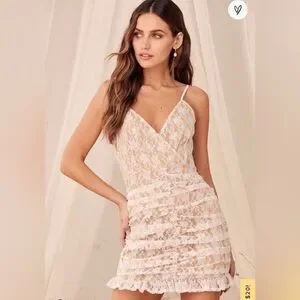Lulus Frilled To Be Here Lace Floral Ruched Mini Dress Ivory Nude L NWOT