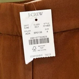 J. Crew Women’s Classic Chino 5” Inseam 100% Cotton Antique Oak Brown Size 4 NWT