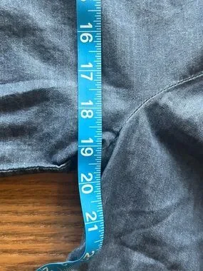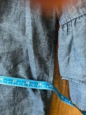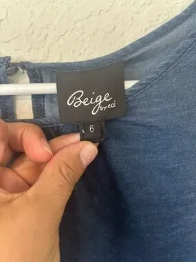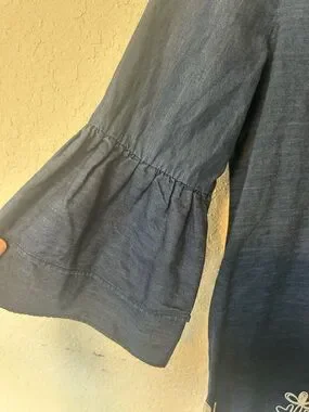 Denim Inspired Chambray Shift Dress White Floral Embroidered Tiered Bell Sleeves