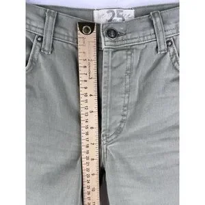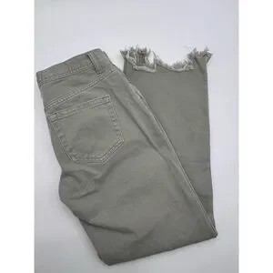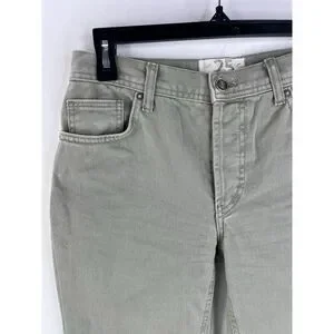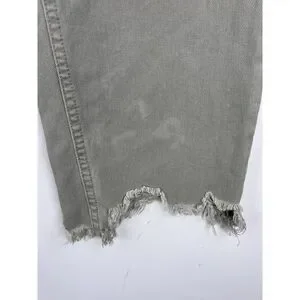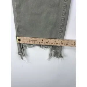 We The Free Jeans Womens 25 Green Denim Mid Rise Pockets Raw Hem Fringes