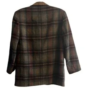 Women's vintage express wool blend plaid blazer brown faux suede collar size M