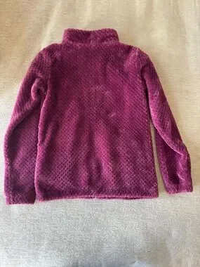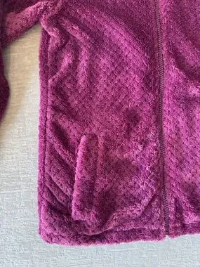 Super soft Columbia kids fleece jacket in a rich berry pink color. Cozy sherpa-style texture with full zip and front pockets—perfect for school, layering, or outdoor play.