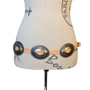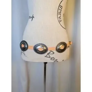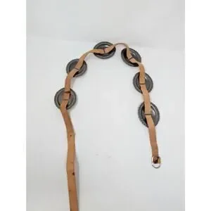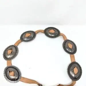 Vintage Western Concho Belt Leather Silver Tone Boho Southwestern