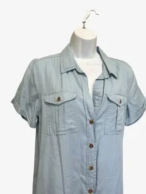 Mexx Light Wash Lyocell Denim Shirt Dress Full Button Front Size S